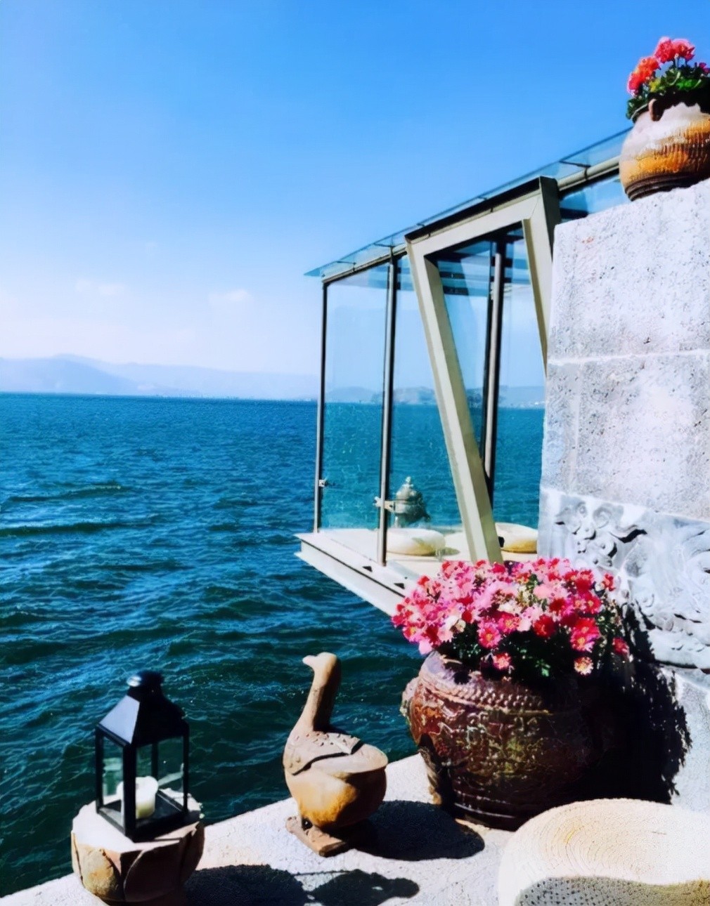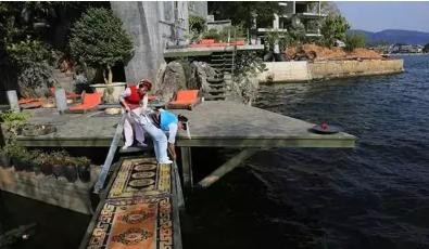 这是她的私家码头,靠岸就是她的“月亮宫”,杨丽萍日常还会在洱海里面取水,浇花种草~