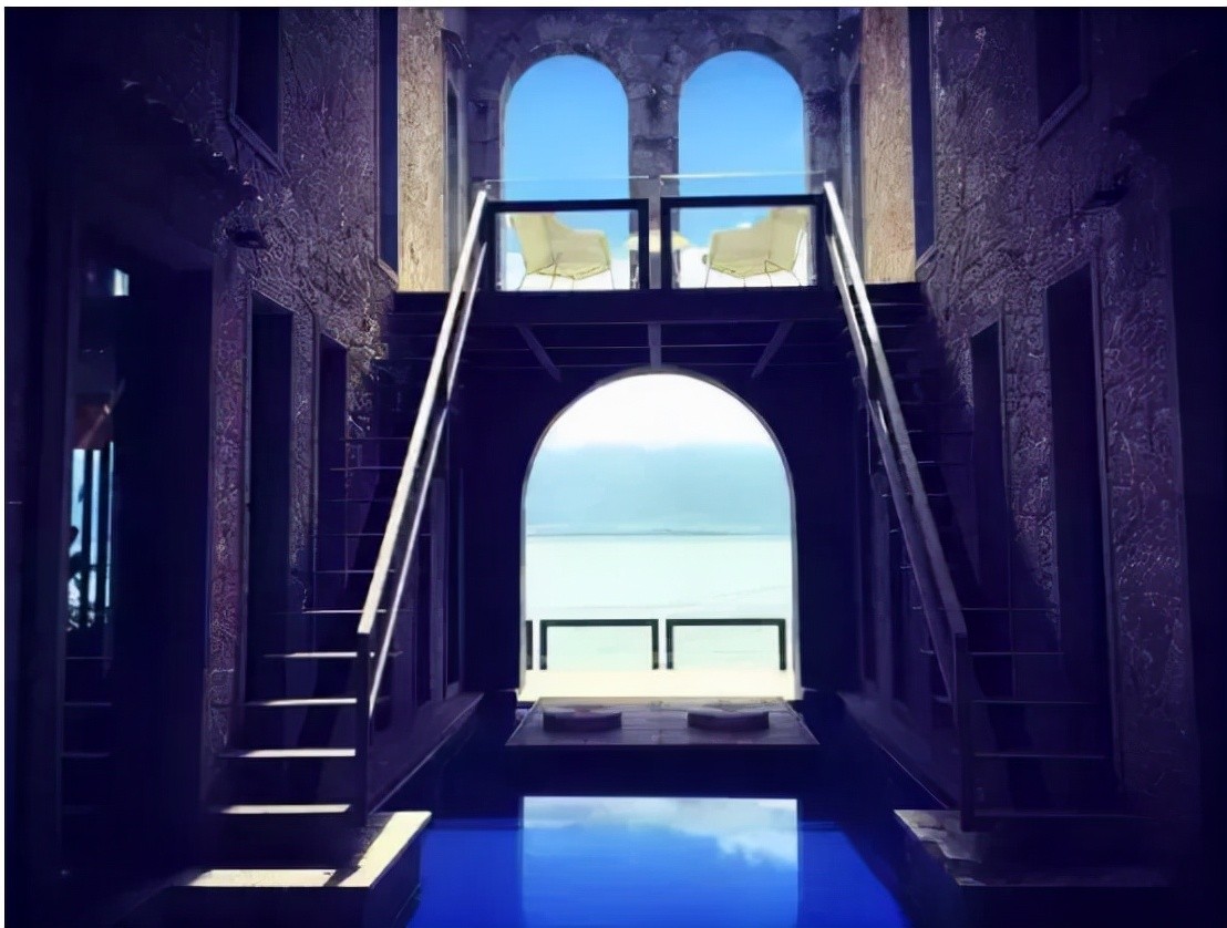 “太阳宫”位于玉几岛的最顶端,总共有四层楼高,共有7套房间,全落地窗