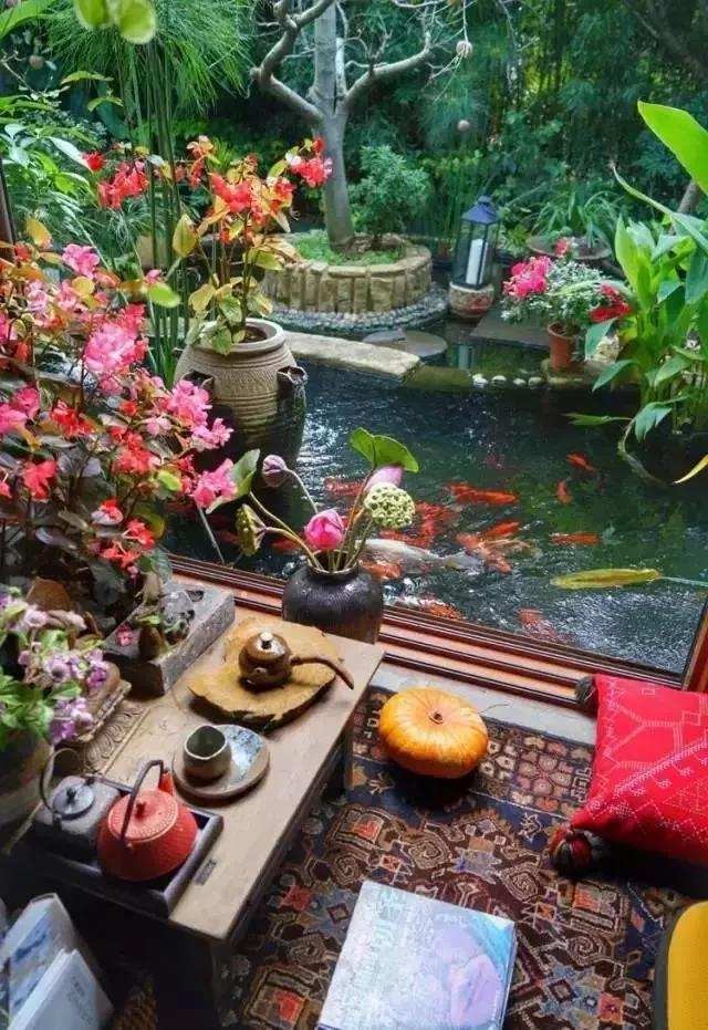 各种花卉,鱼类,水池,应有尽有,