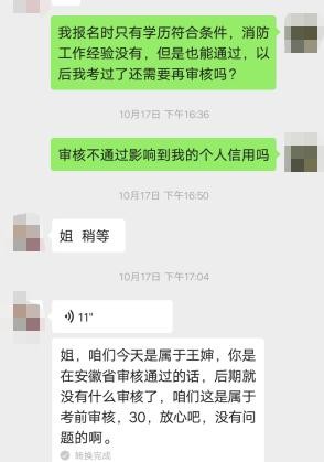 “最开始我自己报不上,我找到嗨学网工作人员,他们说帮我报,并表示审核没有问题。但后来我在网上看到一条一消报考条件的详细说明,里面明确提出报考这个证要取得消防工程专业相应学历,或有过消防安全技术从业经验,并且达到相应年限。”