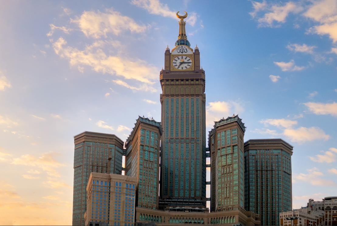 麦加皇家钟楼高达601米,建于2012年,共120层。钟楼的4个侧面各有一个大钟,这些钟是目前世界上最大的钟。钟楼的最上层是一座博物馆,里面有一个室外观景台。