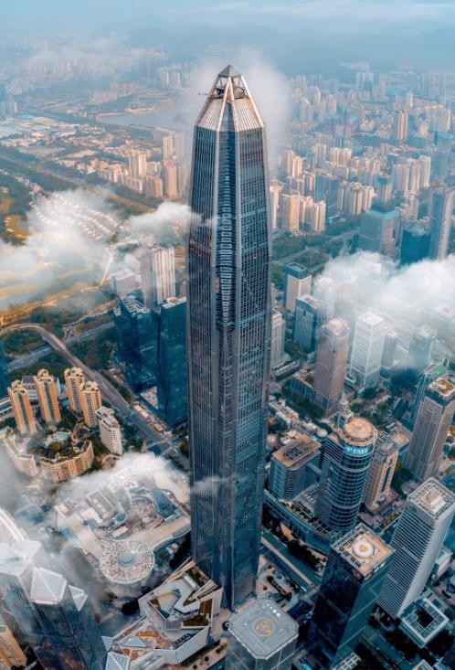 天津高银金融117大厦虽然还在建设中,但2019年5月,在楼顶的菱形结构完成后,大厦已经全面封顶,高度为597米。