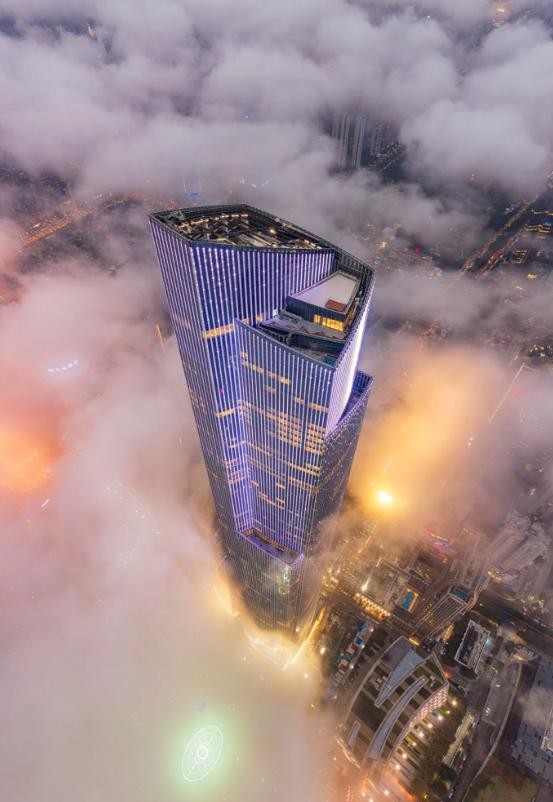 广州的周大福金融中心简称CTF金融中心,以业主周大福企业的名字命名,也是第一座以周大福命名的超高层建筑,高度为530米,共111层。