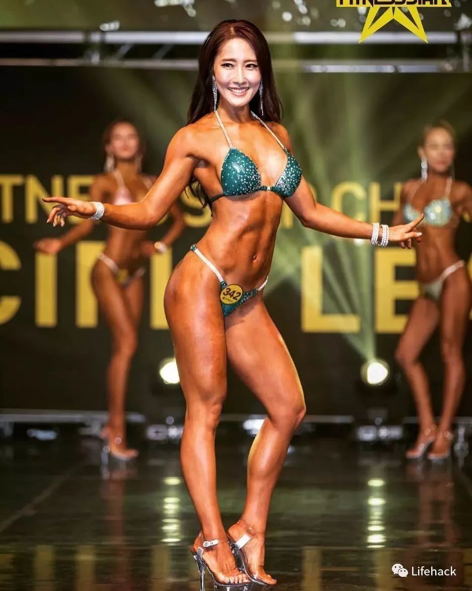 日复一日的刻苦训练,让她收获了媲美职业选手的健美身材▼