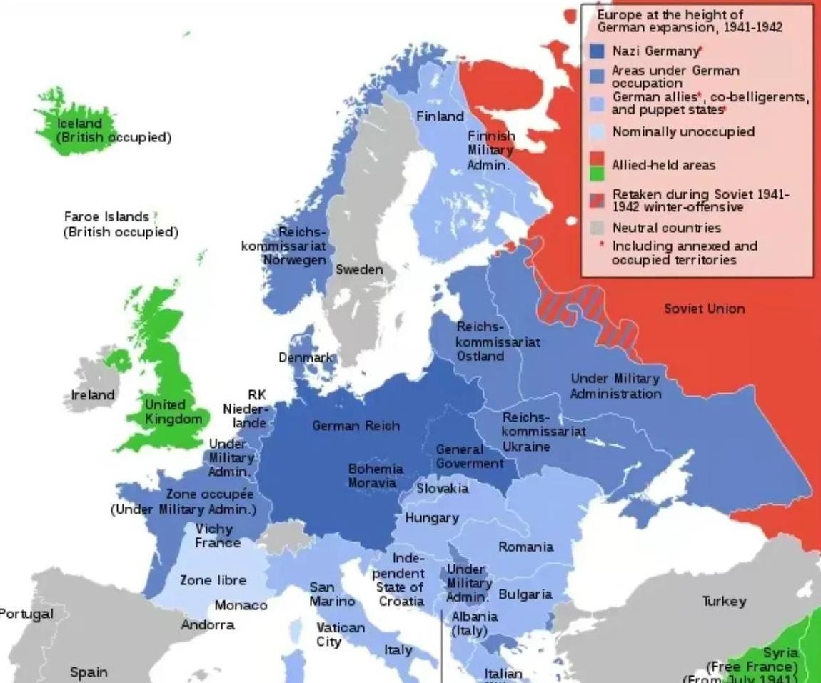 而在战争初期,德国迅速占领了苏联西部的大片土地,这片区域的大约7600万人口也短暂地被德国控制。