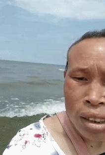 35、大姨:第一次来海边,水也没那么蓝啊,就挺秃然的