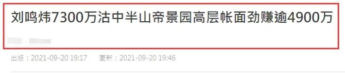 此时,刘鸣炜也做出了同样的举动。刘鸣炜出手的这套豪宅位于中半山,持有17年的时间,升值了大约两倍,最后以7千多万的价格出手。