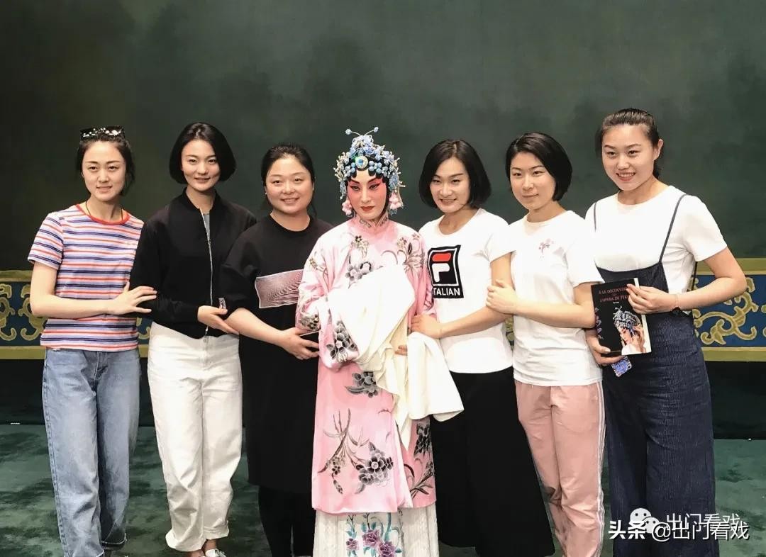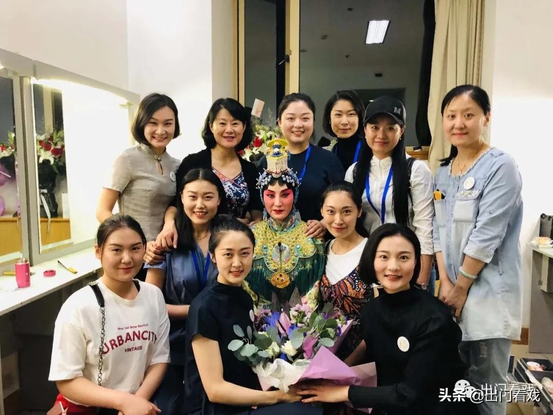 2020年1月17日,北京长安大戏院,《霸王别姬》演出后合影。左起-前排:孟栩羽、姜玥名、李林晓;中间:翟谦、张火丁、潘钰;后排:殷婵娟、李海青老师、张白、杨晓阳、马凤凤、王凡(化妆老师)。