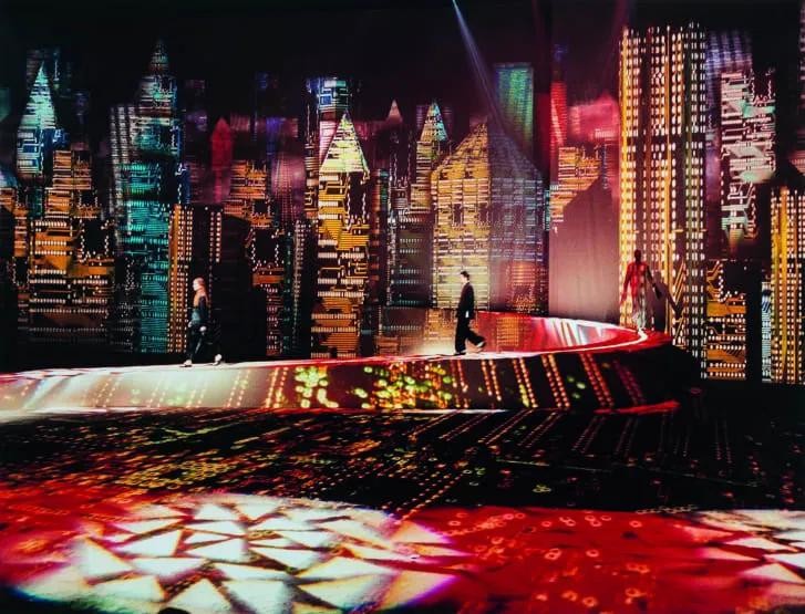在1999年10月,高田贤三举办了自己的告别时装秀,而这场秀的主题同样离不开 Kenzo 最爱的花朵元素——那些充满生机的色彩和花朵在秀场上起舞让这场告别时装秀看起来像是一部浪漫的电影一般。