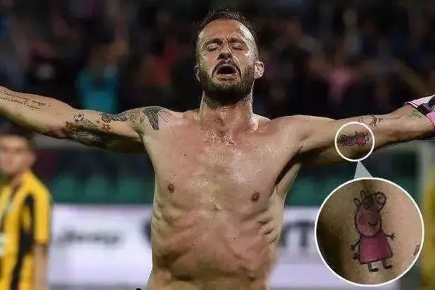 紧接着,有网友发现意大利著名球星吉拉迪诺的左臂也有小猪佩奇纹身。