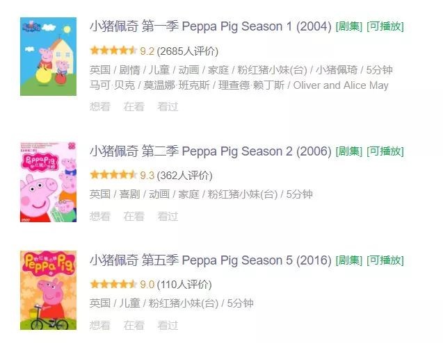 这么受欢迎的《小猪佩奇》,进入中国时已经是一部十几年前的老动画片了。它最早在 2004 年 5 月 31 日在英国 Channel Five 播出,到目前为止已经播出 5 季,第 6 季计划在今年 7 月开播。