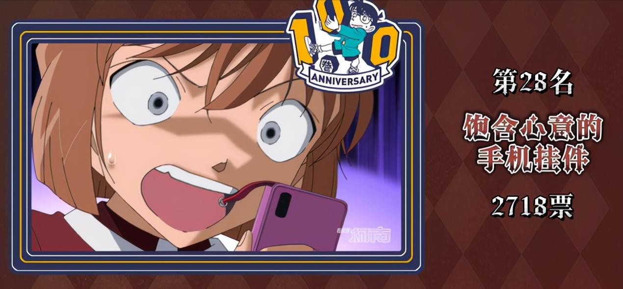 TOP28:《饱含心意的手机挂件》,故事情节其实一般,但亮点在于我们的灰原哀女王在失去自己偶像挂件后那失魂落魄的样子,它所获得的粉丝票数是2718。