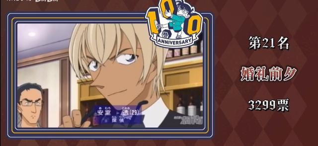 TOP21:《婚礼的前夕》,人气角色安室透(降谷零)初露锋芒的一话,它所获得的粉丝票数是3299。