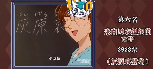 TOP6:《来自黑衣组织的女子》,女王灰原哀的初次登场,它所获得的粉丝票数是8988。