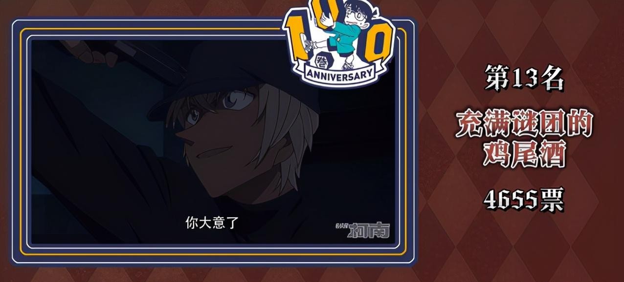 TOP13:《充满谜团的鸡尾酒》,透子与秀一在工藤家门关的那个场景,太惊艳了,它所获得的粉丝票数是4655。