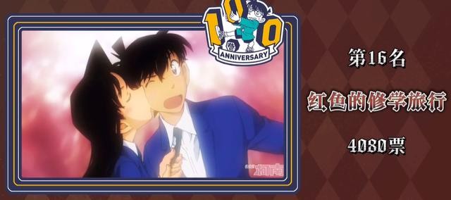 TOP16:《红色的修学旅行》,新兰清水寺一吻定情,有什么比这个更甜蜜的,它所获得的粉丝票数是4080。