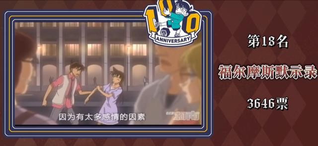 TOP18:《福尔摩斯默示录》,工藤新一终于在伦敦桥向毛利兰表面了心意,它所获得的粉丝票数是3646。