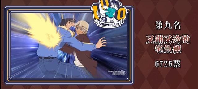 TOP9:《又甜又冷的宅急便》,一个灰原哀被勾掉毛线连衣裙的场景就足够它的人气了,它所获得的粉丝票数是6726。