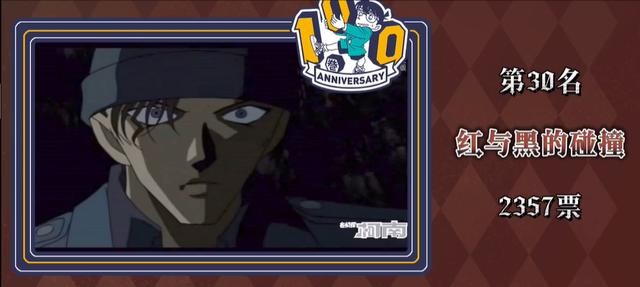 TOP30:《红与黑的碰撞》,赤井秀一所代表的FBI红方正式与柯南携手对抗黑暗组织,该章节不管是在推理还是在热血动作上都有非常精彩的设定,是一场经典的主线对抗故事,而它所获得的粉丝票数是2357。