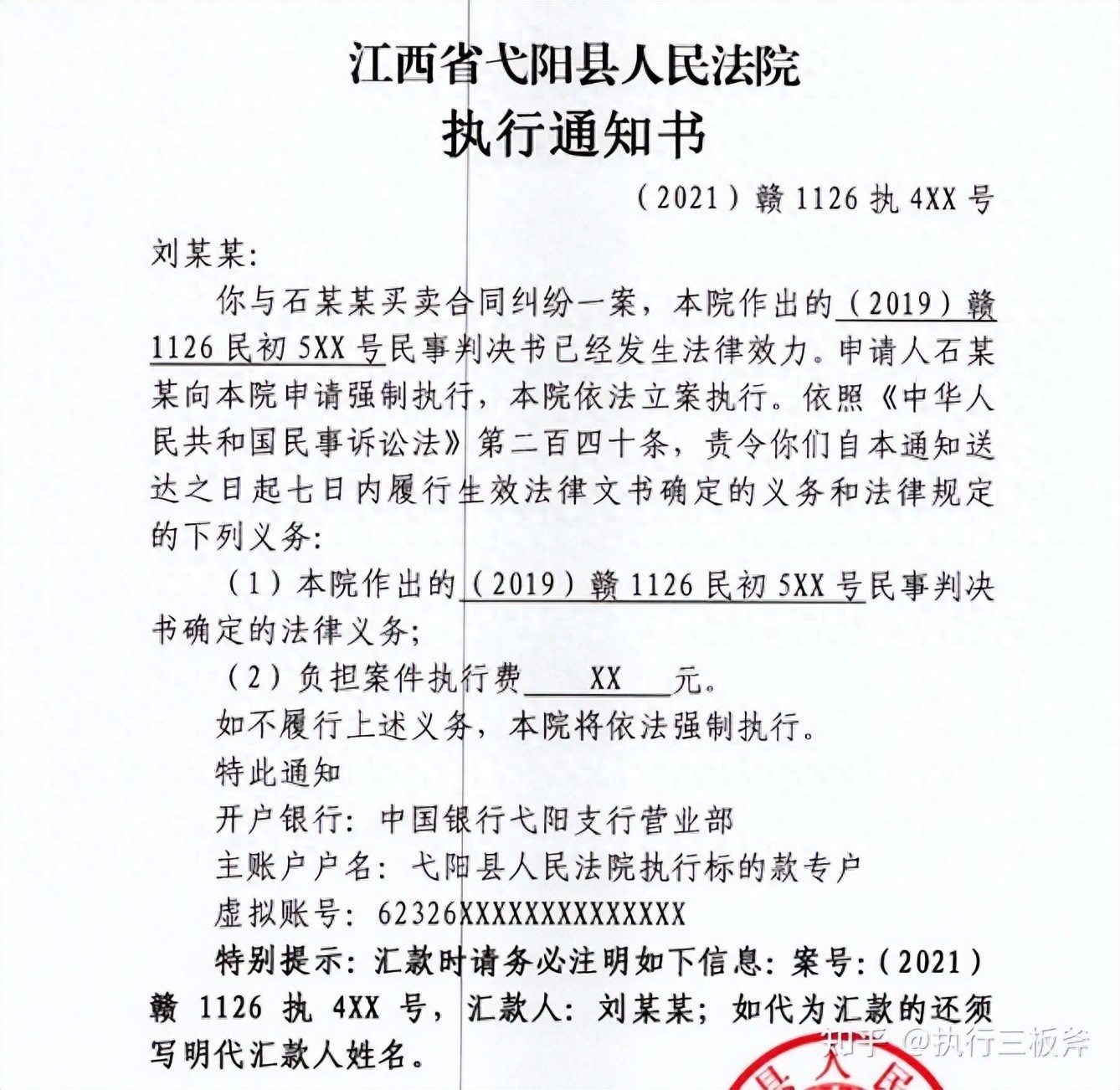 比如:所有法院立案执行后,都会发一个执行通知书、报告财产令、财产申报表、传票。