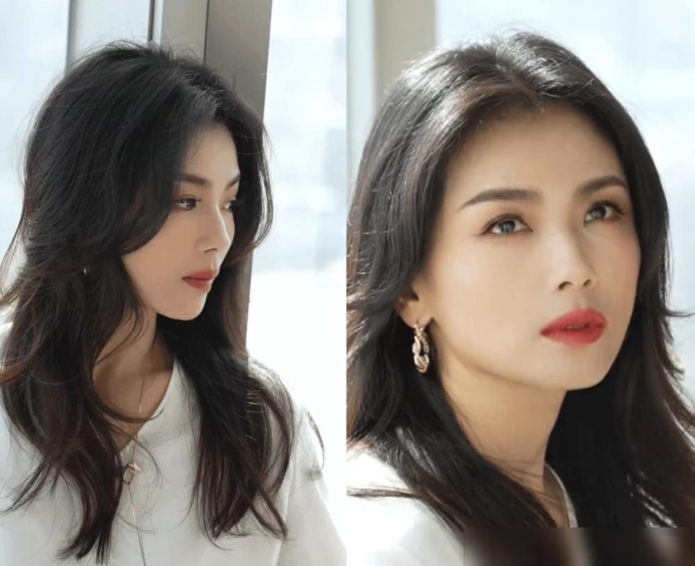 再来看奚梦瑶的发型选择,结婚之前的奚梦瑶面部的脸型有些腻,那么选择这样的中分发型就会导致她的脸型突出的问题被放大,显得整个人油腻了不少, 而结婚之后奚梦瑶面部的轮廓变得越来越清晰,选择这样的中分发型也可以凸显出她的高贵感,提气质的效果更佳。