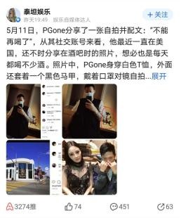 近日,PGone分享了一组自拍,并配文“不能在喝了。”