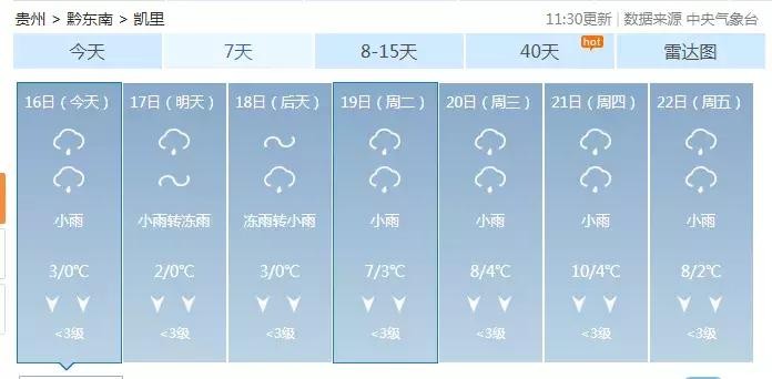 凯里:0~2℃,小雨转冻雨