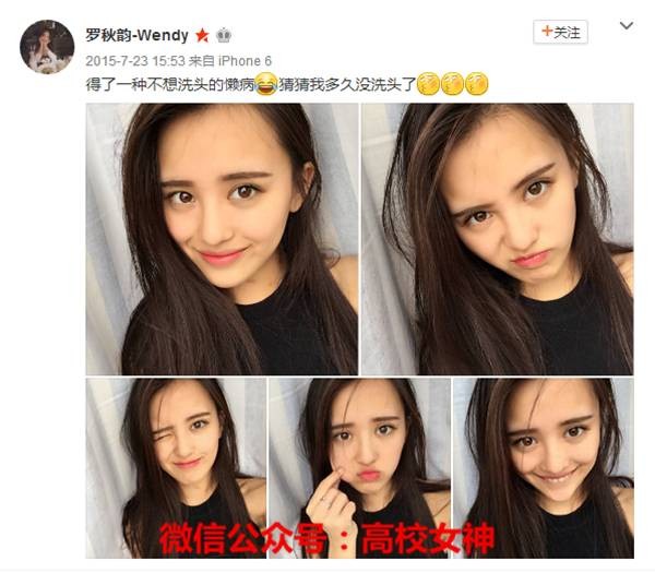 现在网上的美女越来越多,单纯只有颜值的美女已经很难引起大家的注意了,而罗秋韵虽然颜值非常高,却一点包袱都没有,会在微博上放搞怪自拍,还会叫粉丝猜猜自己几天没洗头。而粉丝则回答:反正你不洗头也一样好看。