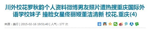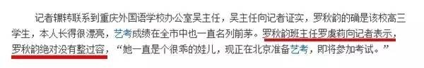 其实罗秋韵在高中时就走红网络了,当时她还是一名艺考生,就读于川外附属外国语学校,正在艺考路上的她因为一组清新甜美的写真走红网络。有的媒体却搞了乌龙,以为罗秋韵就读于四川外国语大学。