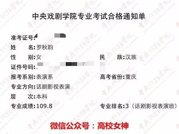 而且罗秋韵考上中戏还是以专业第三名的成绩,真是有实力又有颜值啊~