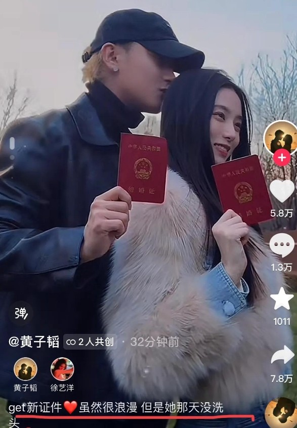 先给大家回顾一下这事儿的经过。黄子韬和徐艺洋突然官宣结婚,大家还在震惊之余,没想到黄子韬在文案里发了这么一句话:“老婆没洗头”。这啥意思?新婚大喜,发个甜蜜公告,居然还要吐槽老婆的“卫生问题”?