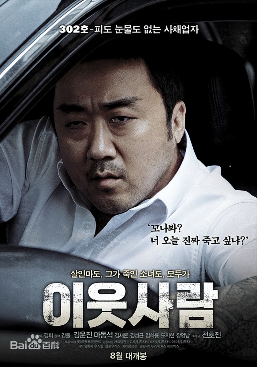 8 邻居 2012年上映 通过此片大家认识了这个经常演黑社会或者小警察角色的马东锡 整部电影里 马东锡居然是人们最希望他出现的角色 角色深入人心 以至于以后马东锡在参演什么黑帮角色都会让人想起邻居里这个连舅舅都不认得要债大叔 马东锡凭借该片获得第49届韩国百想艺术大赏电影类奖项-最佳男配角奖