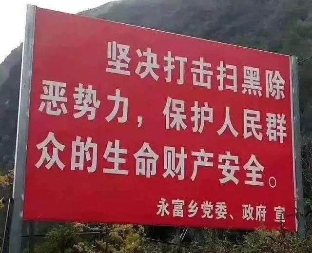 否定之否定等于肯定,“打击”“扫”黑“除”恶势力,就是维护黑恶势力啊!这标语有点反动啊。