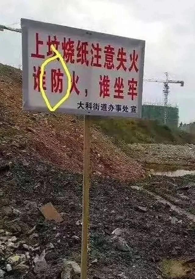 “防火”和“放火”意义相反,大科街道办事处胆大包天,竟然禁止“防火”,估计他们希望人们都能够大胆“放火”?