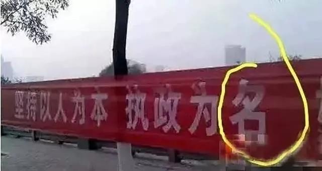 执政为民,你写成执政为“名”,写这个标语的人,或许会被拘留七天!