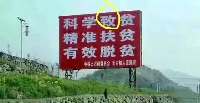 科学会“致”贫,那科学还要来干什么?如此大面积的标语牌,竟然是镇委会所树立的,难道火石镇政府人员都小学文化?“治”和“致”区别还是很大的。