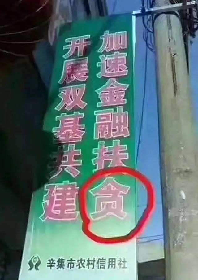 “扶贫”属于为民办实事、好事,“扶贪”则鼓励金融犯罪!你们农村信用社,到底贪了多少?贪了也不需要用标语广而告之啊!