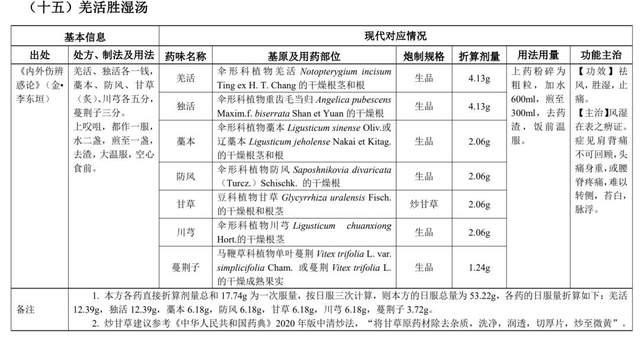 该《关键信息表》提供了首方剂的2项基本信息(出处和处方、制法及用法)和6项现代对应情况(药味名称、基原及用药部位、炮制规格、折算剂量、用法用量、功能主治等内容)。