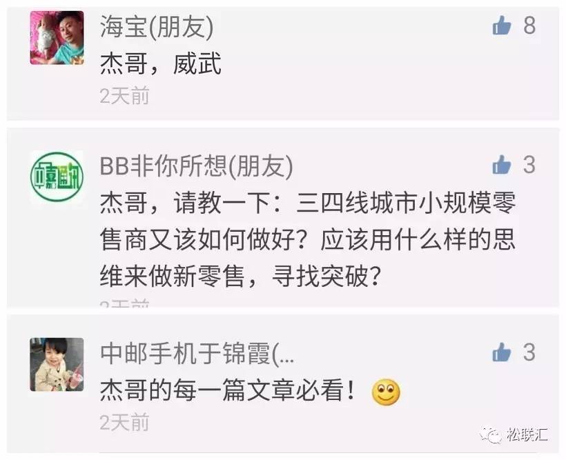 以上文中提及品牌的观点及建议仅代表个人对行业的研究,与本人所在公司无关;部分数据及图片引自网络和朋友圈;如果您喜欢杰哥的文章或对您有所帮助,请关注公众号:松联汇 并转发