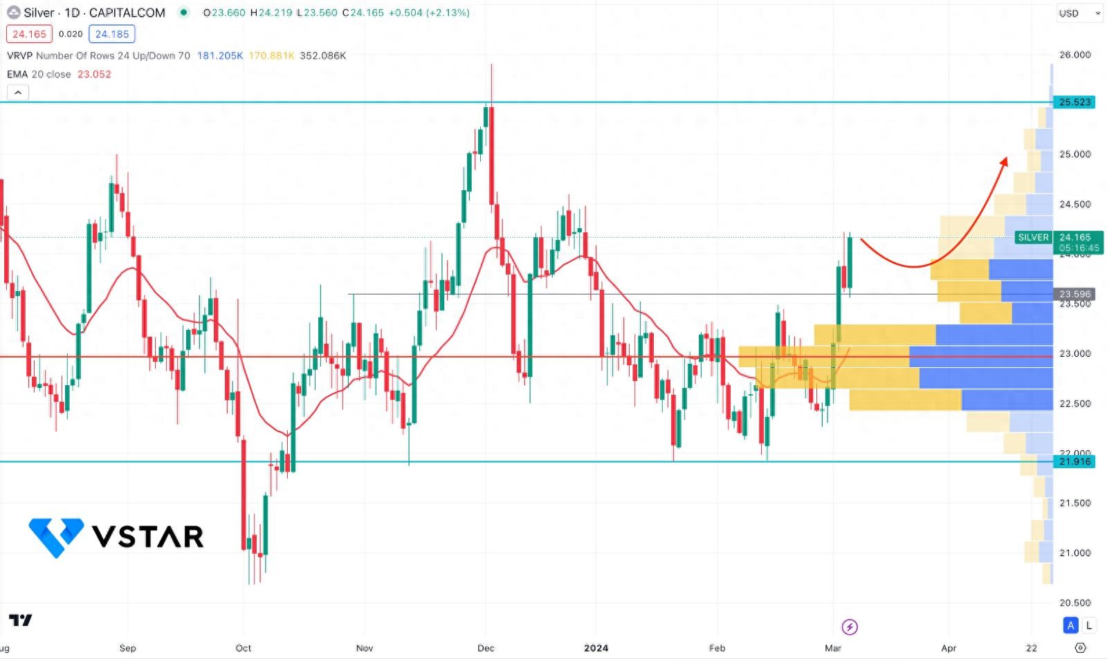 XAGUSD 价格在达到年初至今水平之前提供了从 23.65 至 23.60 区域的买入机会。