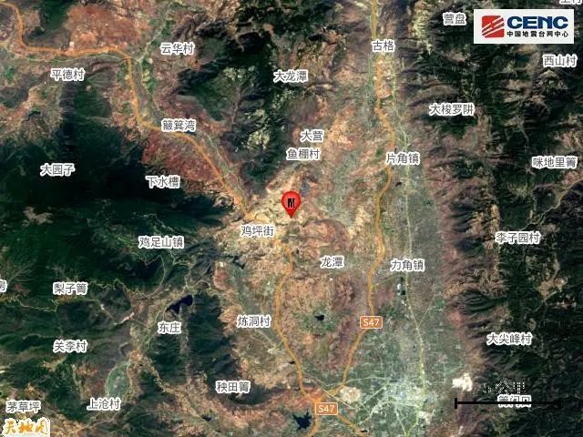 本次地震周边5公里内的村庄有鸡坪街、长坪子、前面山、鸡坪关、西瓜地、沙湾、大塘子、吴家箐、团山、干塘子,20公里内的乡镇有鸡足山镇、力角镇、太和乡、金牛镇、大营镇。