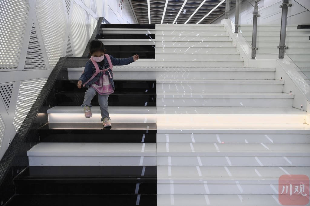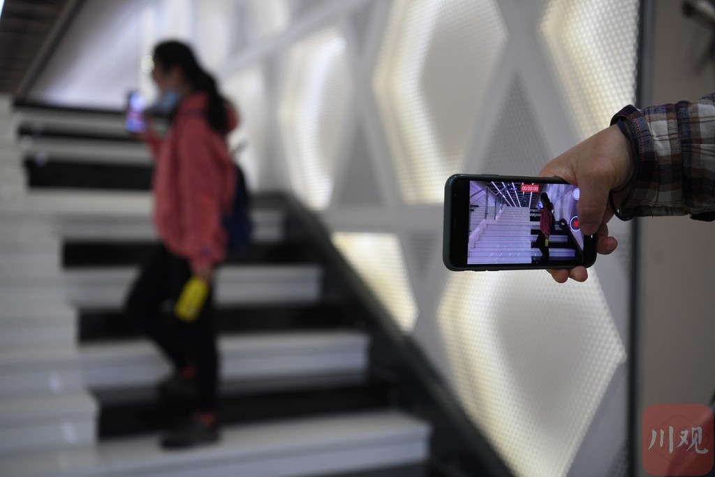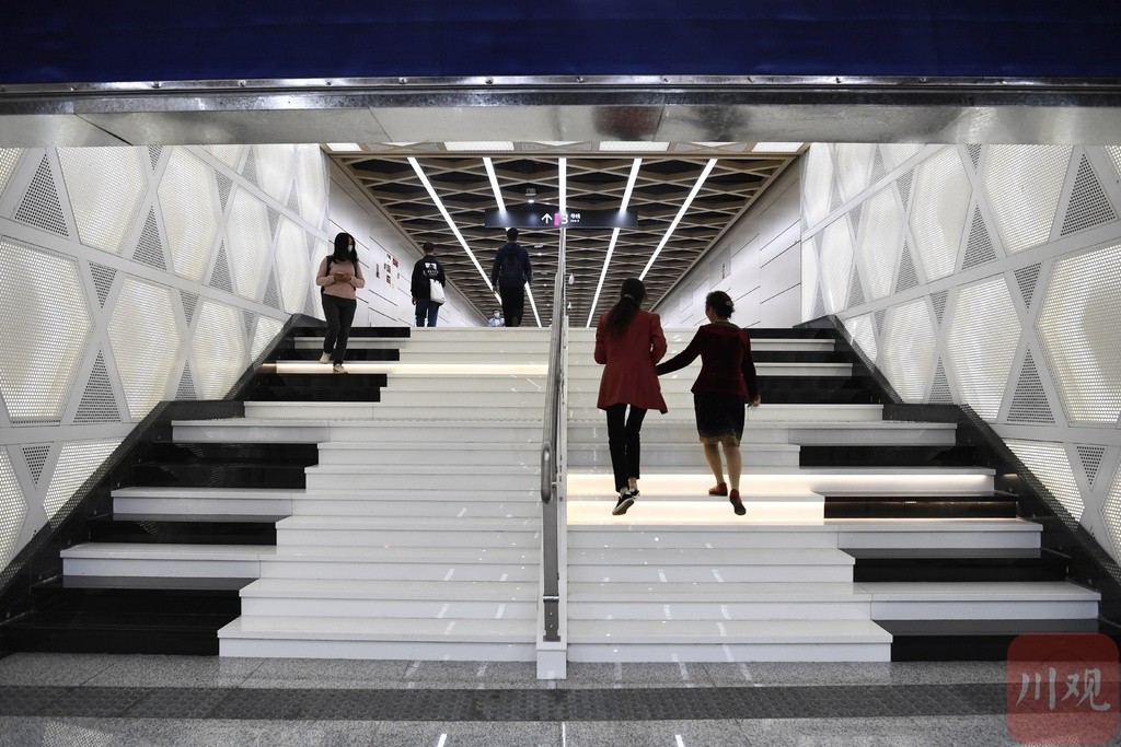 4月20日,成都地铁3号线磨子桥站与成都城市音乐厅联络通道内的“黑白琴键”音乐阶梯成为市民争相留影的新打卡点。