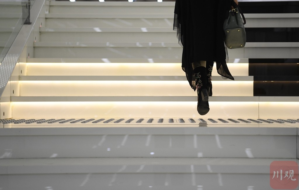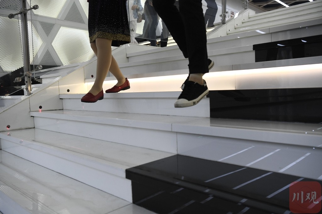 市民通过时,“音乐阶梯”不但会亮灯,还会发出不同的钢琴音调。仔细一听,是一首《成都》!