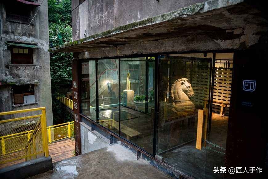 几年前重庆籍设计师李传波在探访老街时,被这里颇具年代感的,经年踩踏凹陷的石梯,斑驳剥落的扶手,工业风的吊顶,闲置废弃的印刷机所吸引,租下两栋厂房,改为“工作室”。这就是鹅岭二厂文创公园的前身。