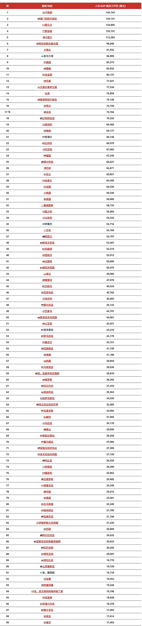 注:数据来源于全球金融杂志(Top 100 Richest Countries In The World)