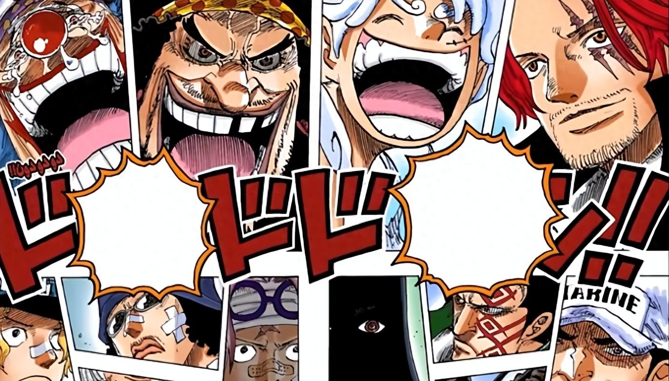 图片上方是四位四皇,左下方是海军、海贼以及革命军的人,而右下方的人同样是对应左边的人物设定,右下方的人分别是赤犬、伊姆、龙和神秘人,所以目前神秘人应该就是海贼成员。