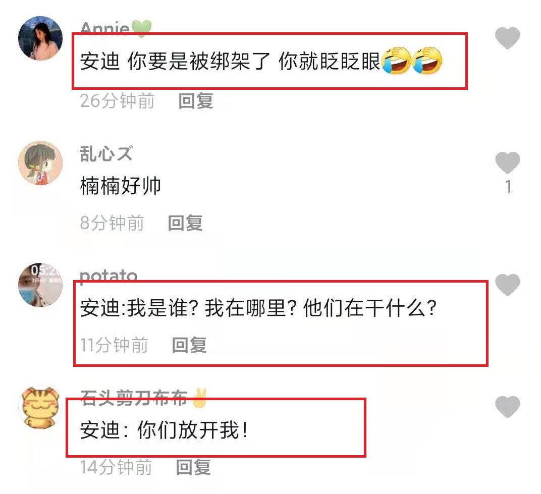 “这是缺了大林子的一家三口”“安迪,你要是被绑架了,你就眨眨眼”“安迪:你们放开我”“哎呀郭汾阳这小肉肉好可爱”“圆咕隆咚”“安迪教养和大林子一样好,知道用手遮一下”“大小姐要是再不回来,家里可就没位置啦”。