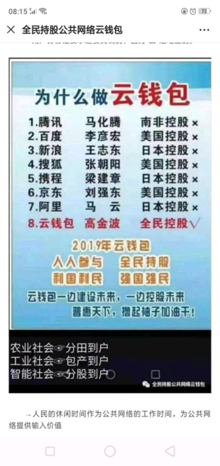 而作为云钱包APP只是全民控股公共性质网络下的一个创新产品而已。