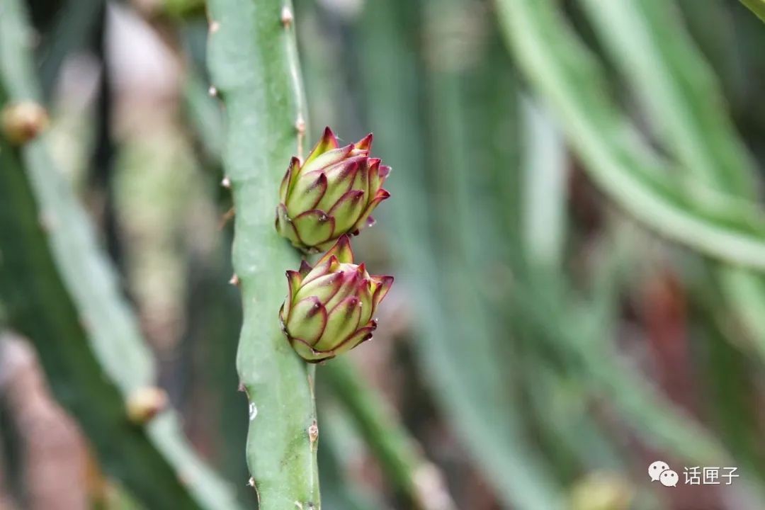 跟着“大阿哥”一路往里走,占地两亩的火龙果养殖大棚内,枝头已萌生花苞,“虽务过农,但没有搞过像样的大规模种植,尤其是园里还种植了大片的热带水果棚,别说养了,什么火龙果、莲雾、嘉宝果、百香果,过去连见都没见过。”