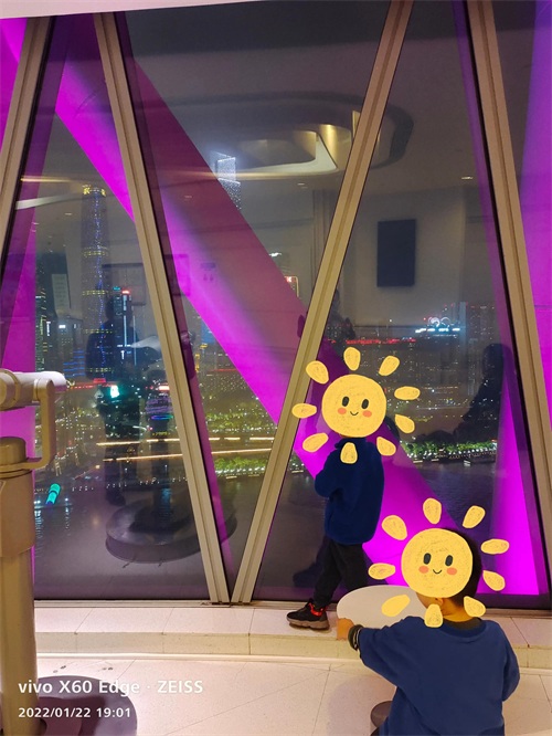 在这里我给大家支一个小妙招,完全可以花小钱游览“小蛮腰”广州塔。在广州塔的B功能区第17-22层有一个金逸空中电影院(阅江西路店),其实就在广州塔的塔腰身部位。我们只要打开大众点评选择这家电影院,然后选定观影时间就可以登上广州塔了,在这里你可以看完一场电影后欣赏广州美丽的夜景,而电影票价只要65元一张(大家提前几天预订好电影票计划好路线),象那位妈妈一家4口也只要花260元,无需其他上广州塔的费用。